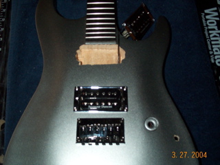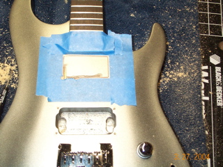 Alright, enough already. Time to get down to business. I carefully measured where the new pickup would go and removed the old bridge humbucker: