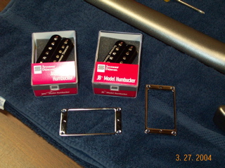 I did a fair amount of research on the web on humbucker pickups, and came up with a combination of a Seymour Duncan JB SH-4 in the bridge position and a Seymour Duncan Jazz SH-2 in the neck position. And they weren't even the most expensive pickups out there :-)
